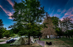 2* Campingplatz Municipal la Cascade, Restaurant Around the Pressoir, gute flache Radfahrgegend, hügelig in der Nähe